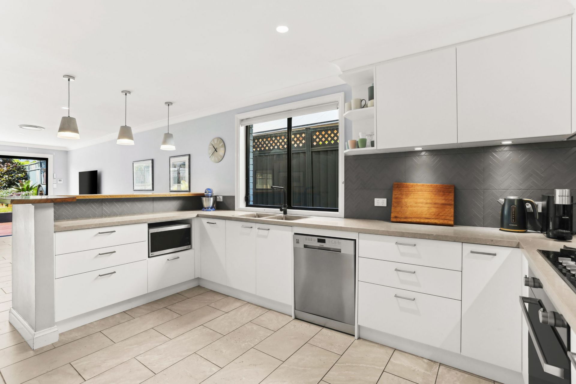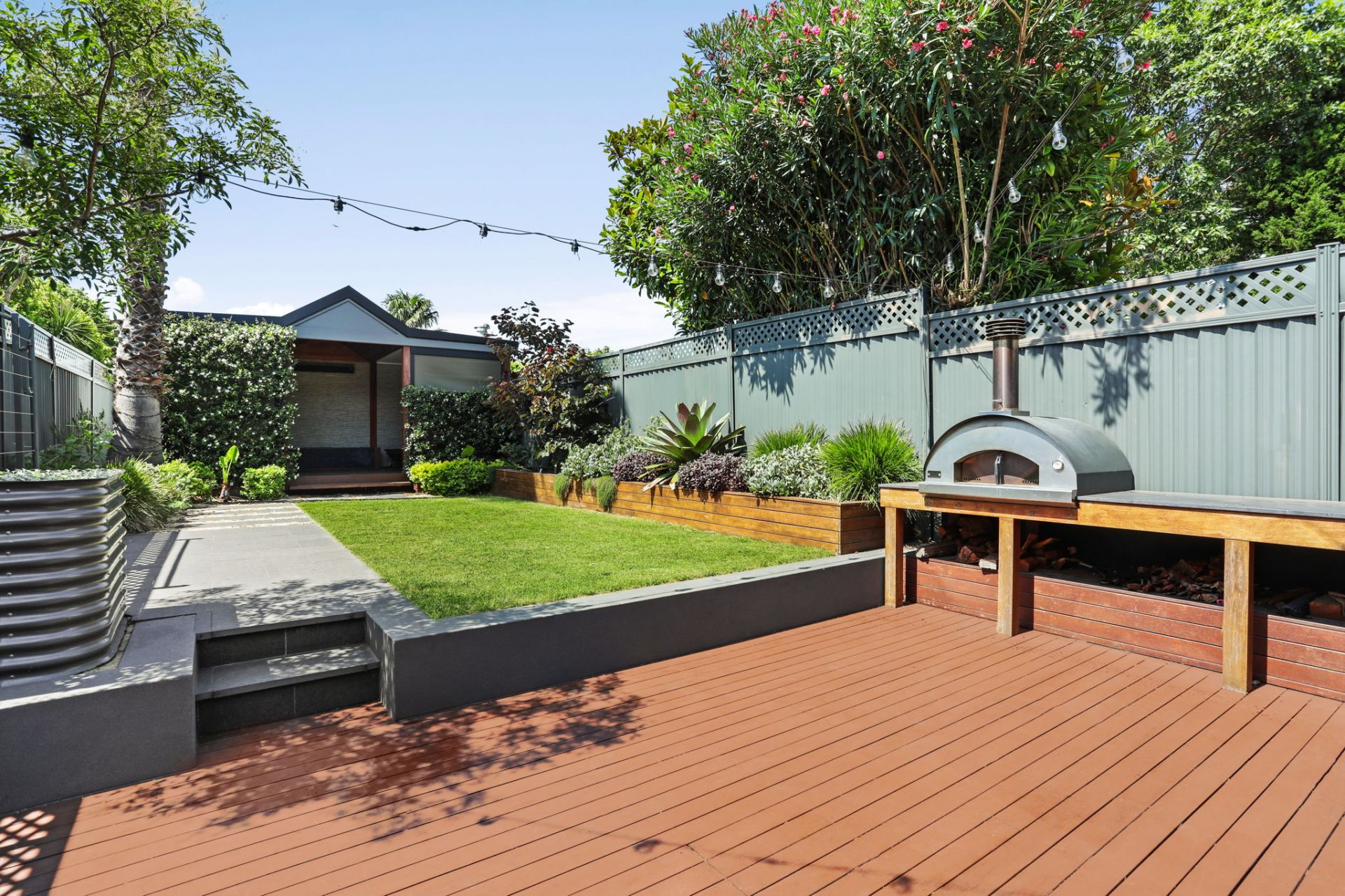 This renovated three bedroom + study family home enjoys contemporary light filled interiors, a spacious flowing floorplan and an outdoor entertainer's oasis complete with a wood-fired pizza oven, and a cabana with a built-in BBQ.