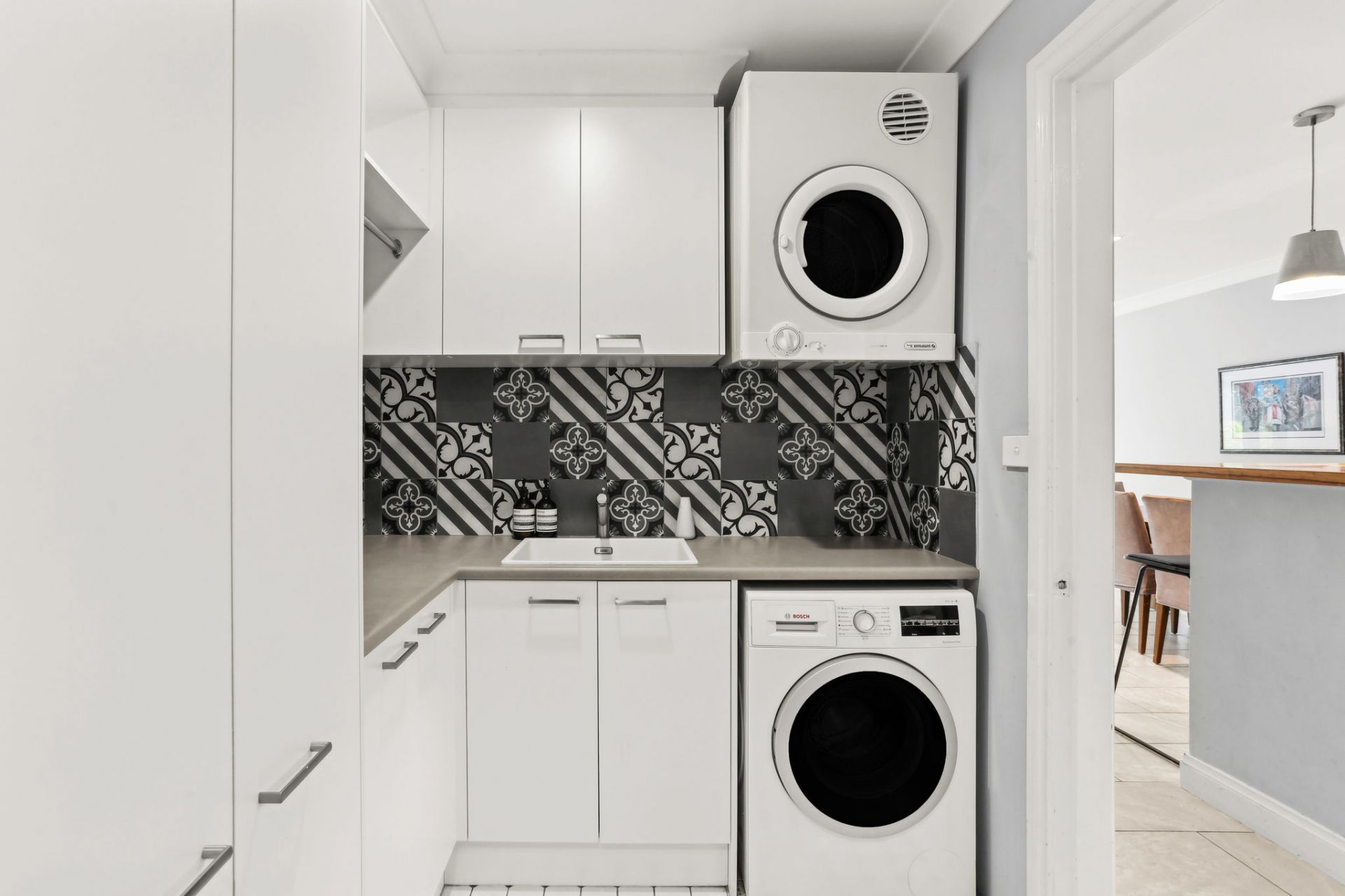 - Renovated laundry with a dryer, ample cupboard space and an additional W/C