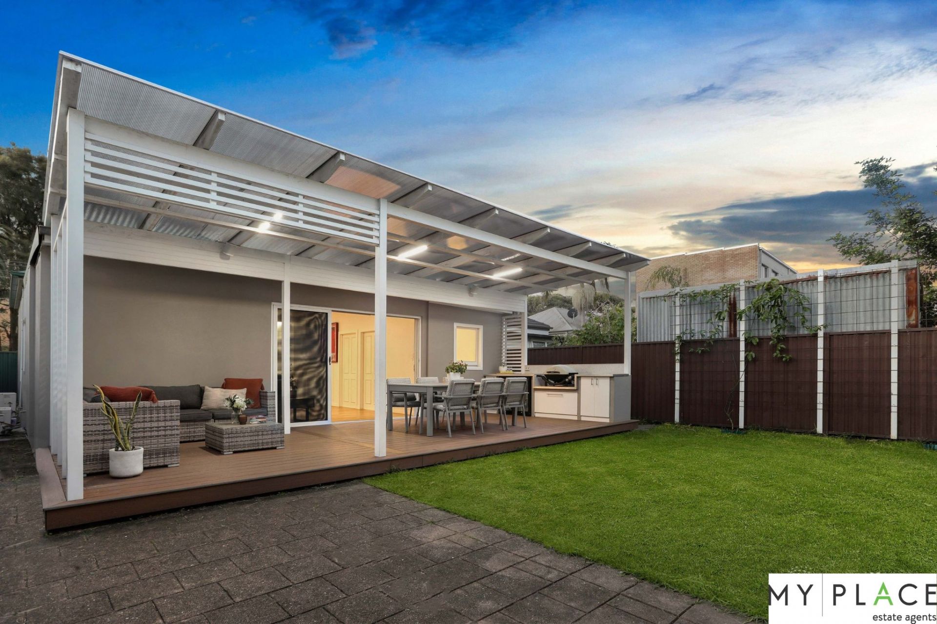 - Deck overlooks the child-friendly lawns bathed in sunshine