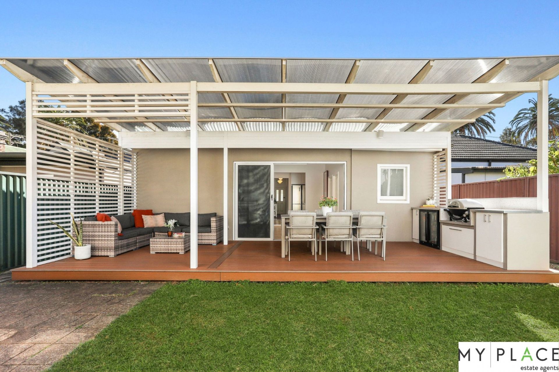 - Generous covered entertainers' deck with outdoor BBQ kitchen