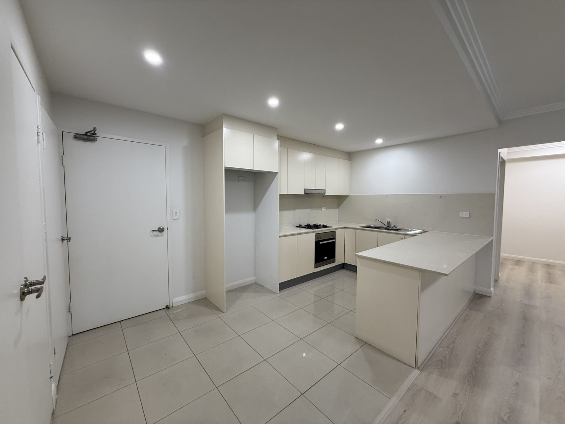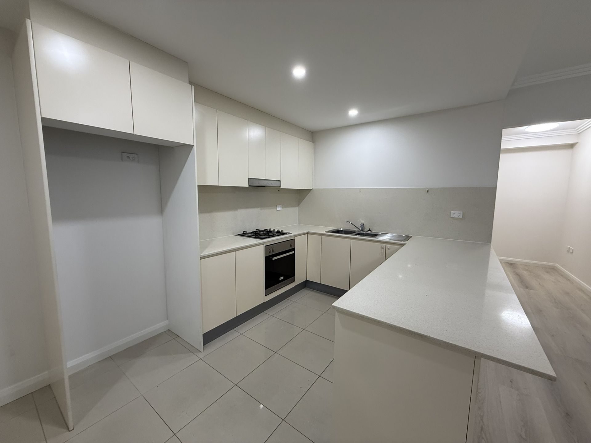 - Modern kitchen with Caesarstone benches and stainless steel appliances including a gas cook top and dishwasher
