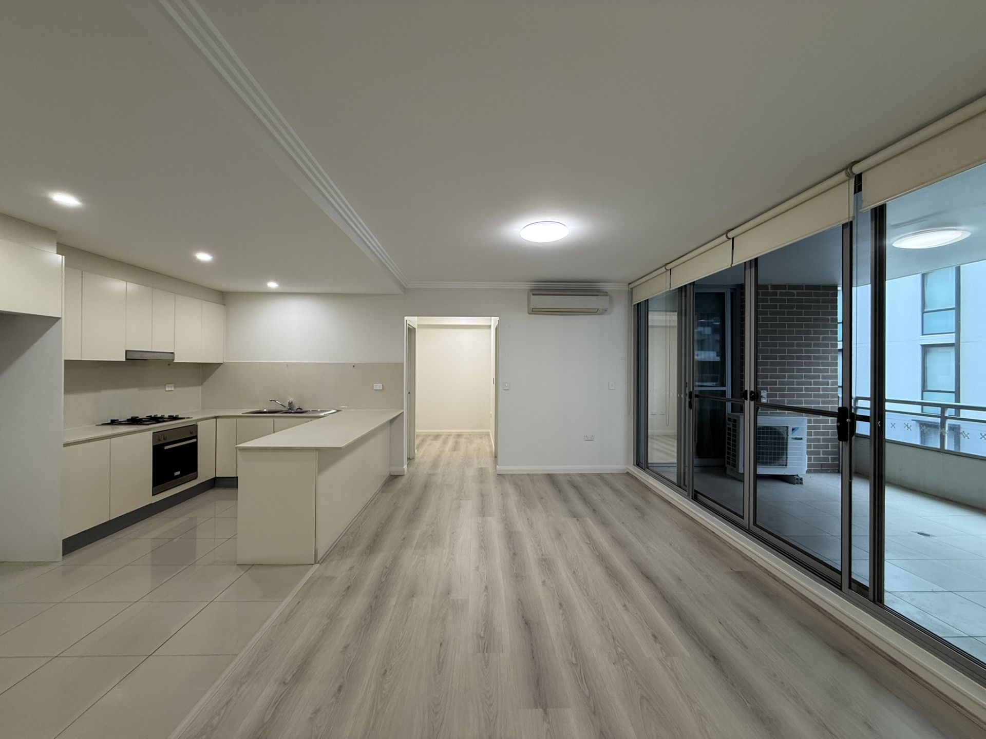 - Open plan living and dining area, opening out to a large and sunny balcony