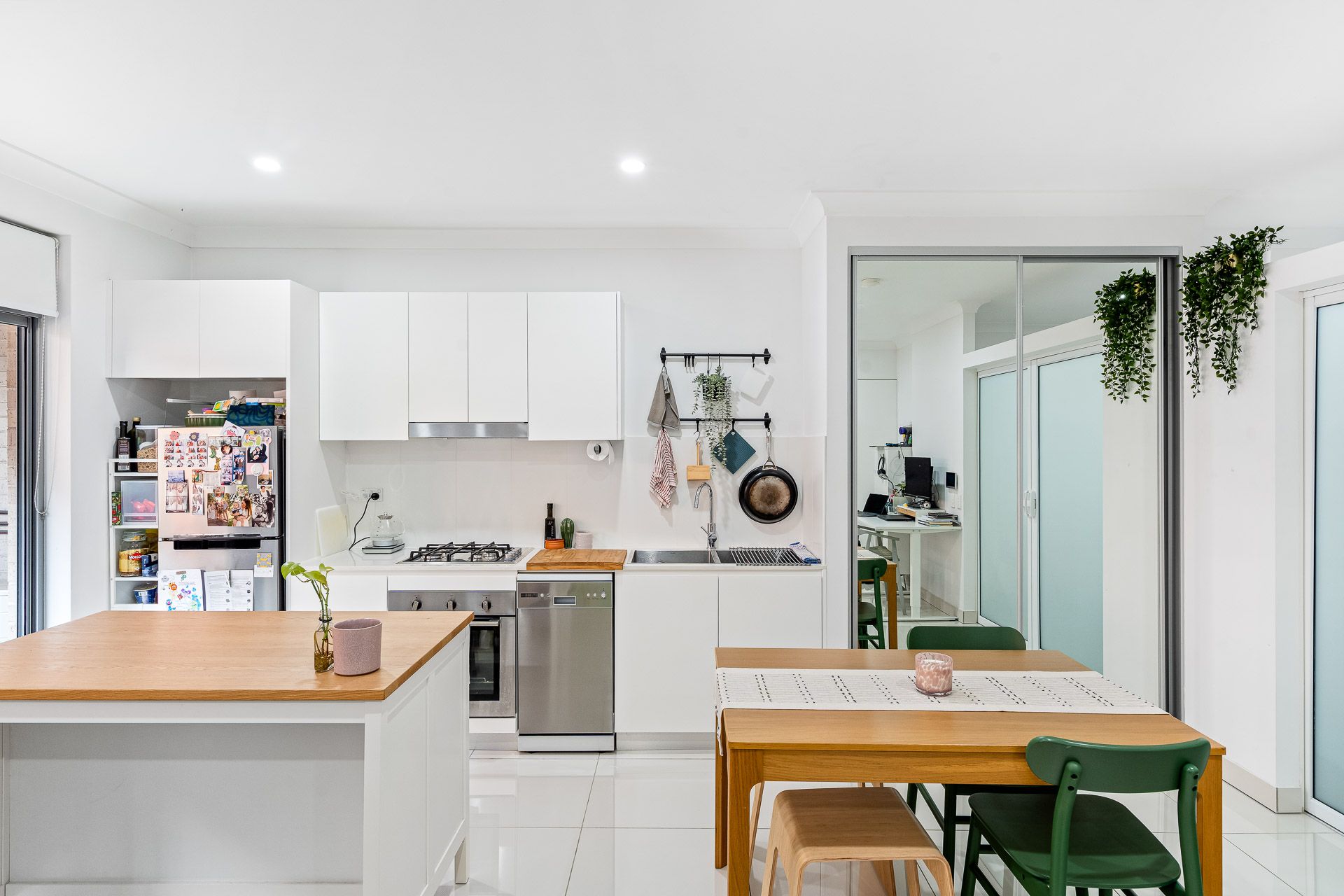 Open plan living and dining flowing onto an entertaining balcony