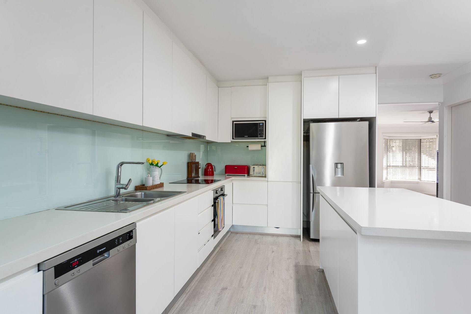- Open-plan kitchen & dining with Caesarstone benchtops, breakfast bar & ample storage