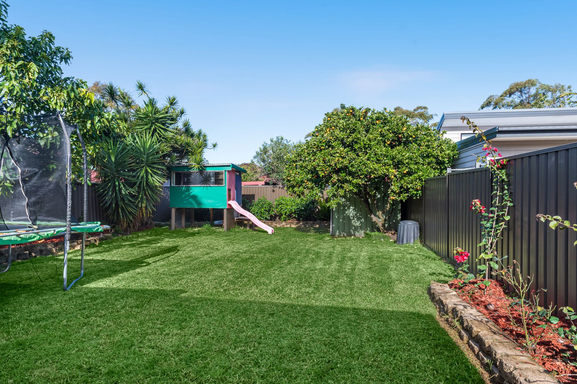- Covered outdoor pergola flowing out to a large level backyard – ideal for kids and year-round entertaining