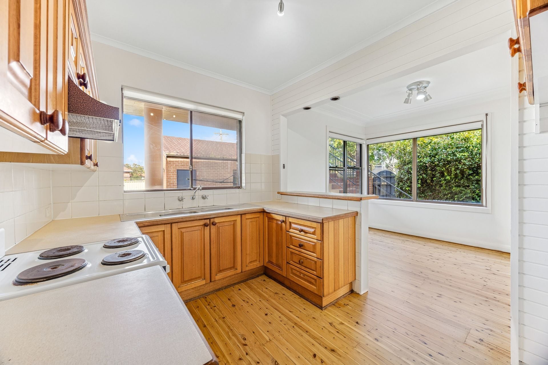 - Neat timber kitchen with adjoining dining room